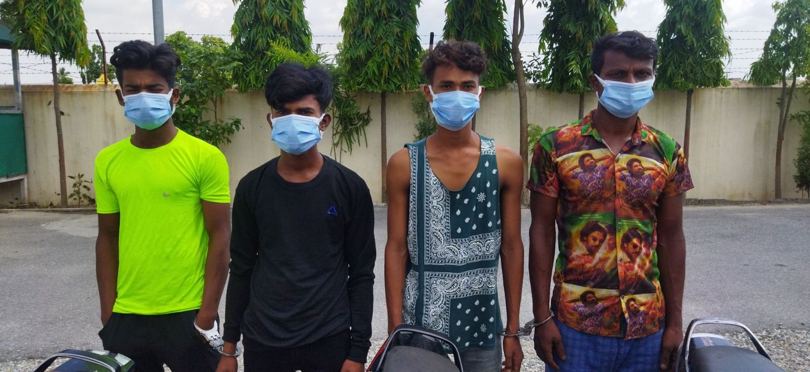 पथरी । चोरीको मोटरसाइकल सहित ४ जना युवाहरुलाई जिल्ला प्रहरी कार्यालय मोरङले पक्राउ गरेको छ । विरटनगर स्थित नोवेल मेडिकल कलेज विरटनगर परिसरबाट चोरी भएका मोटर साइकल सहित पक्राउ परेका हुन । १ नम्बर प्रदेश प्रहरी कार्यालय विराटनगरले जानकारी दिए आनुसार बिभिन्न मितिमा हराएका.६ प ६८०२ नम्वरको डिस्कभर मोटरसाईकल, प्रदेश १–०१–०१३ प ४५०७ नम्बरको पल्सर मोटरसाईकल र नम्बर नखुलेको १५० सिसिको पल्सर मोटरसाईकल चोरी गर्ने विराटनगर ४ का २२ बर्षीय नविन माझी, विराटनगर ८ का २५ बर्षीय मोहमद हजरत, दुहवी नगरपालिका ९ सुनसरीका १८ बर्षीय मोहमद सलाउदिन र ३४ बर्षीय मोहमद नसुरदिनलाई चोरीका मोटरसाईकल सहित पक्राउ गरेको हो ।
