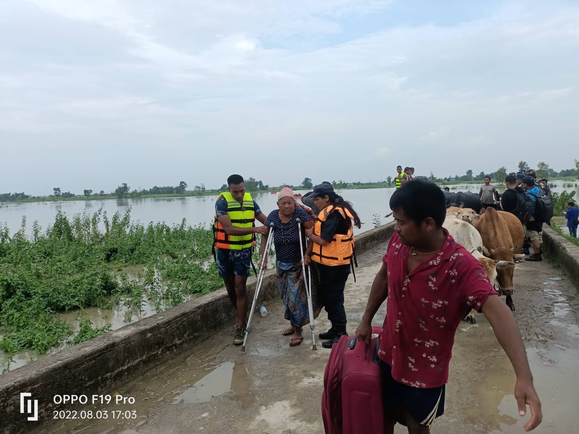 पथरी । बेलका नगरपालिका ८ डुब्रिबोटेमा सप्तकोशी नदीले बाँध कटान गरी सिसौली बस्तिमा प्रबेश गरे पछि सुरक्षा निकायलाई परिचालन गरेको छ । डुवानमा परेका बाढी प्रभावित क्षेत्रमा बसोबास गर्ने स्थानियमा मानिसहरुलाई नेपाल प्रहरी लगायत नेपाली सेना र सशस्त्र प्रहरी बललाई परिचालन गरि सुरक्षित स्थानमा सार्ने काम भइरहेको हो ।