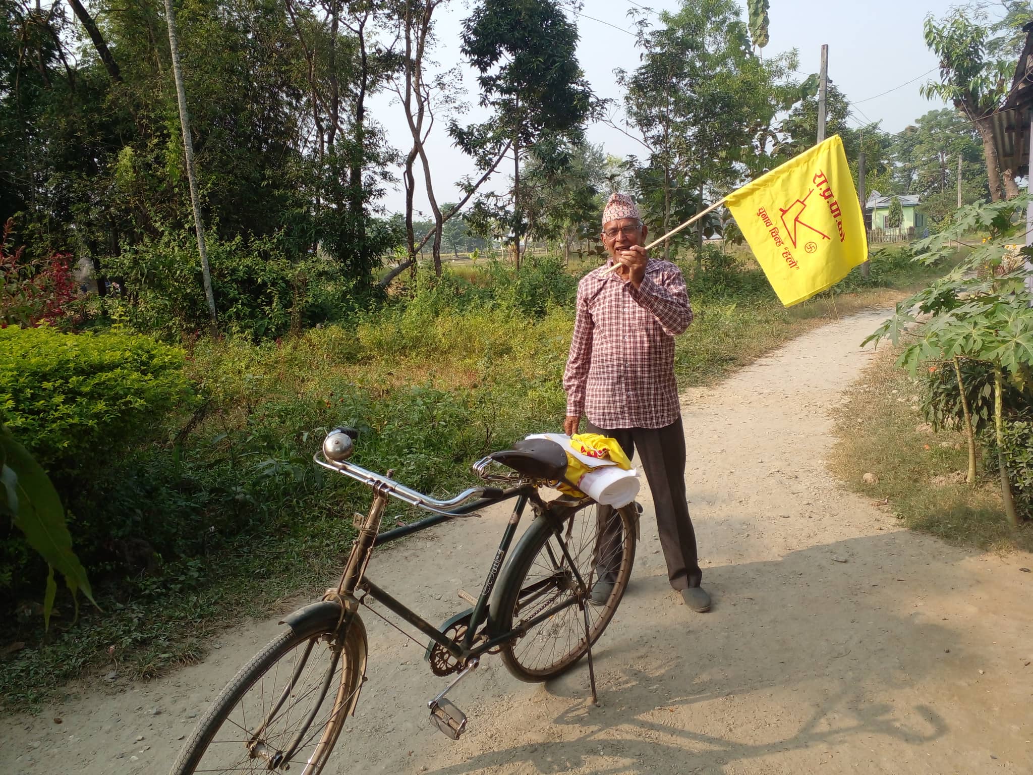 पथरी । ८० वर्ष उमेर पुगेका लोकनाथ दाहाल राप्रपा उम्मेद्धवार रेखा थापालाई जिताउन अनुरोध गर्दै आइतबार छिमेकी बस्तीमा भेटिए ।