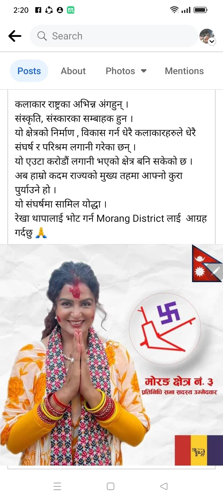 नेतृ मानन्धरले सामाजिक संजाल फेसबुकबाट मंगलबार भोट मागिदिए पछि चर्चाको बिषय बनी रहेको छ ।