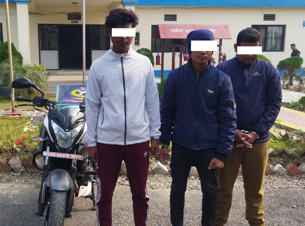 उनिहरुलाई पुष १४ गते विराटनगर ठाकुरबाडी रोडबाट प्रदेश नं.–०१–०२–०४२ प ३७७७ नम्बरको चोरीको मोटरसाईकल पक्राउ परेका थिए । पक्राउ परेका उनिहरु ३ जनालाई नै जिल्ला अदालत मोरङमा चोरी कसूरमा दिन ५ (पाँच) म्याद थप गरी थप अनुसन्धान गरिरहेको प्रहरीले जानकारी दिएको छ ।