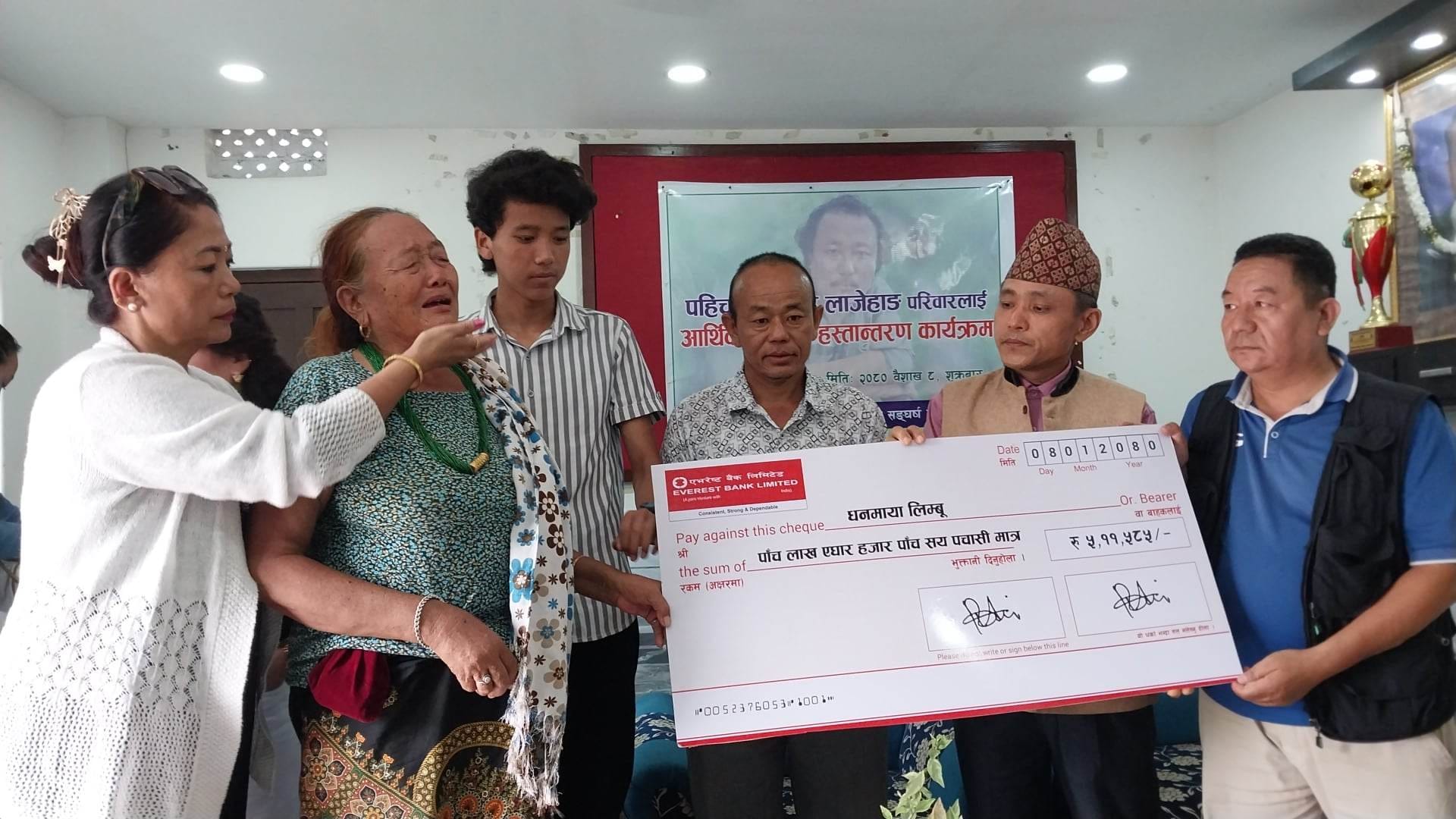 पथरी । सहिद पदमबहादुर लिम्बु (लाजेहाङ) को परिवारलाई आर्थिक सहयोग रकम हस्तानतरण गरिएको छ ।