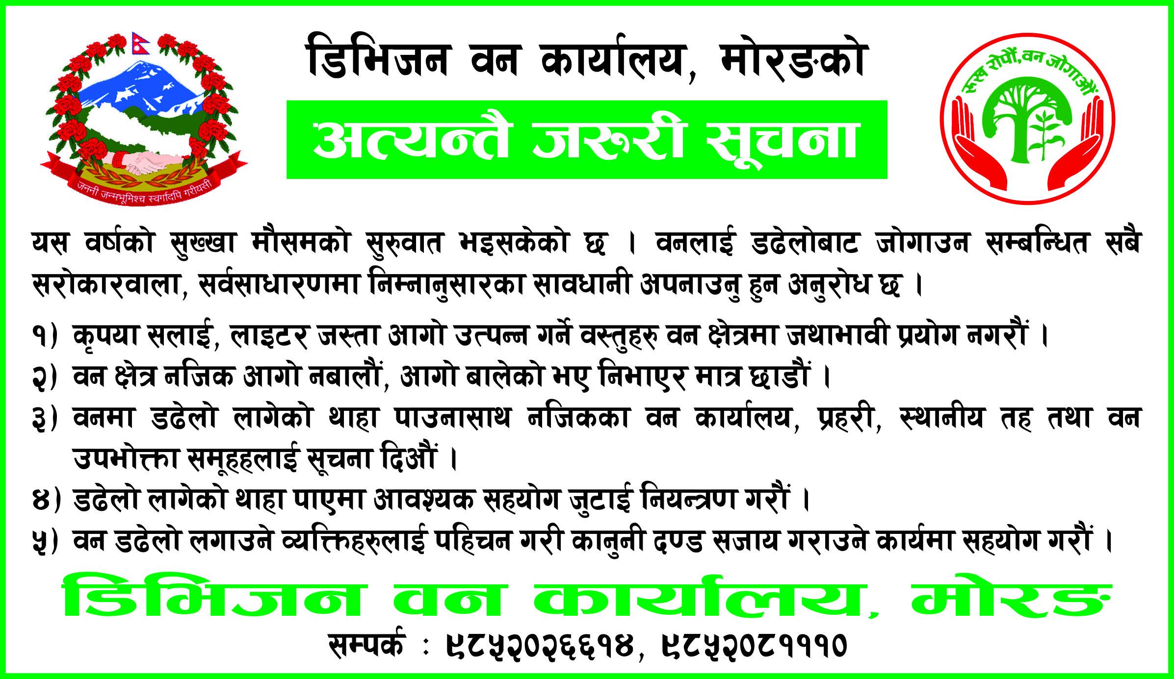 यता जिल्ला प्रशासन कार्यालय मोरङले विराटनगरको बिभिन्न स्थानमा निषेधज्ञ जारी गर्दै बिज्ञप्ती निकालेको छ ।