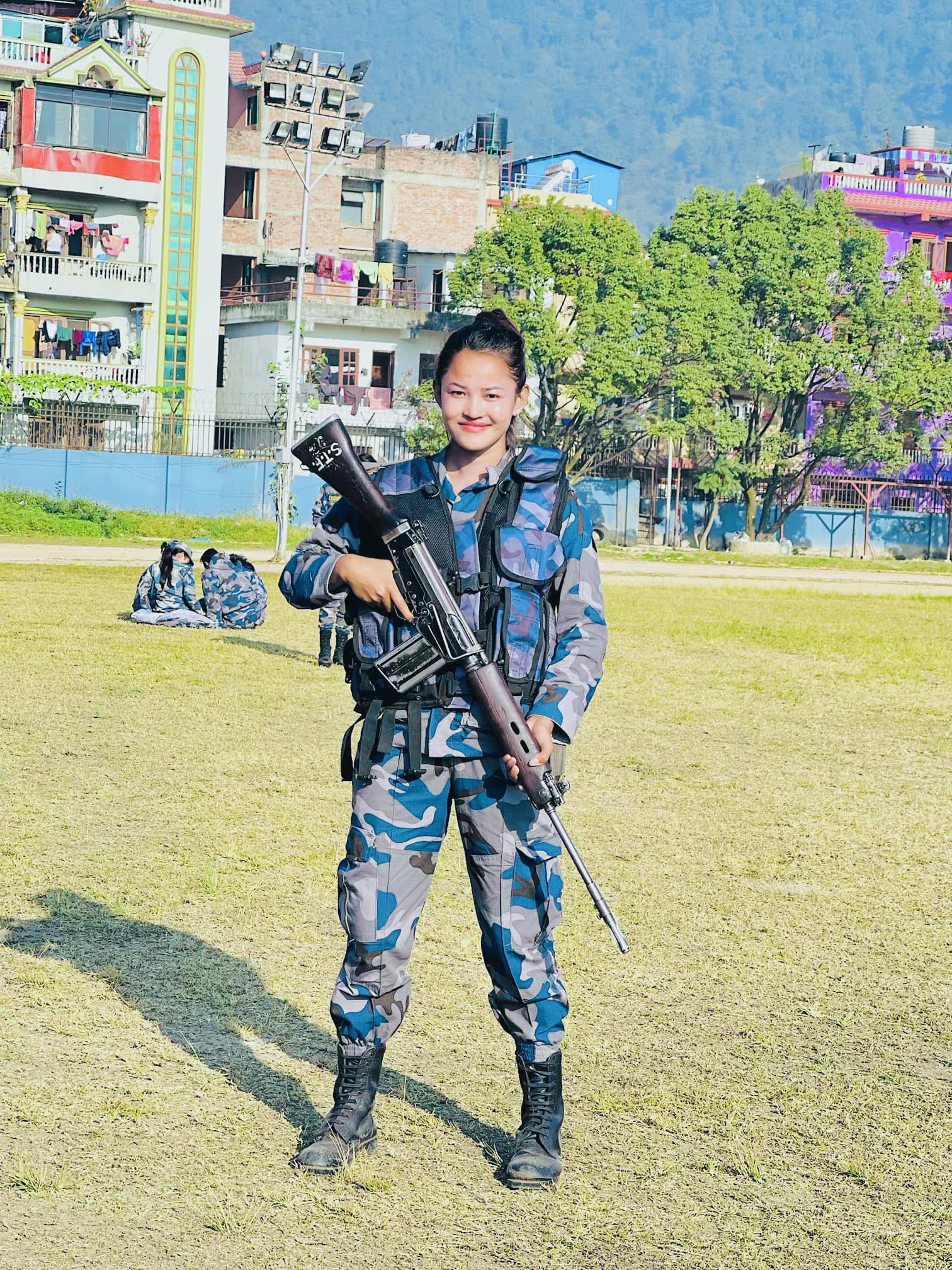 सशस्त्र प्रहरीको जवानको रुपमा सरु लिम्बु । तस्वीर सरु लिम्बुको फेसबुक