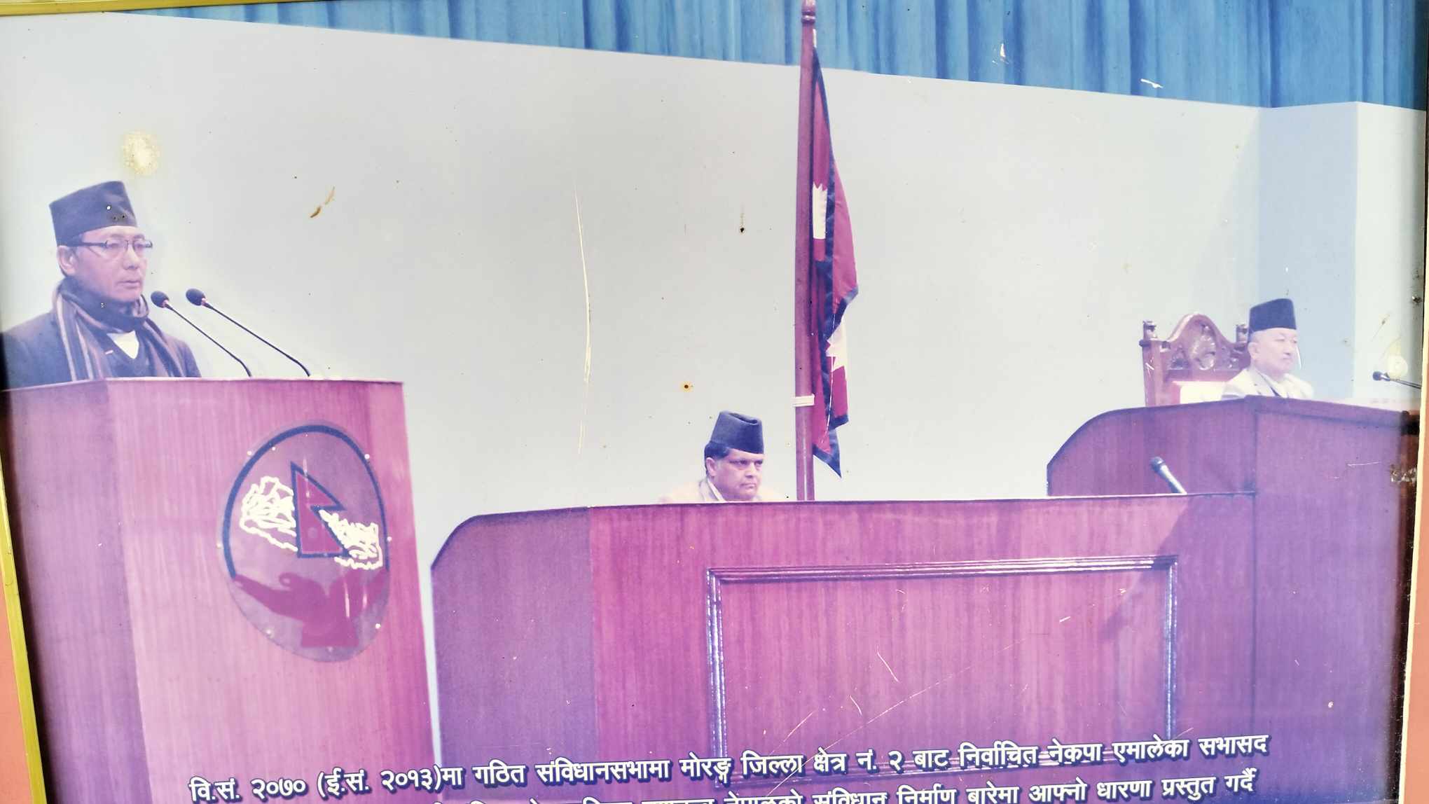 संविधानसभाको सदस्य निर्वाचित भएर गए पछि संविधानसभाको रोष्टमबाट सम्बोधन गर्दै, संविधान सभा सदस्य चण्डीप्रसाद राई । तस्वीर स्रोत परिवार