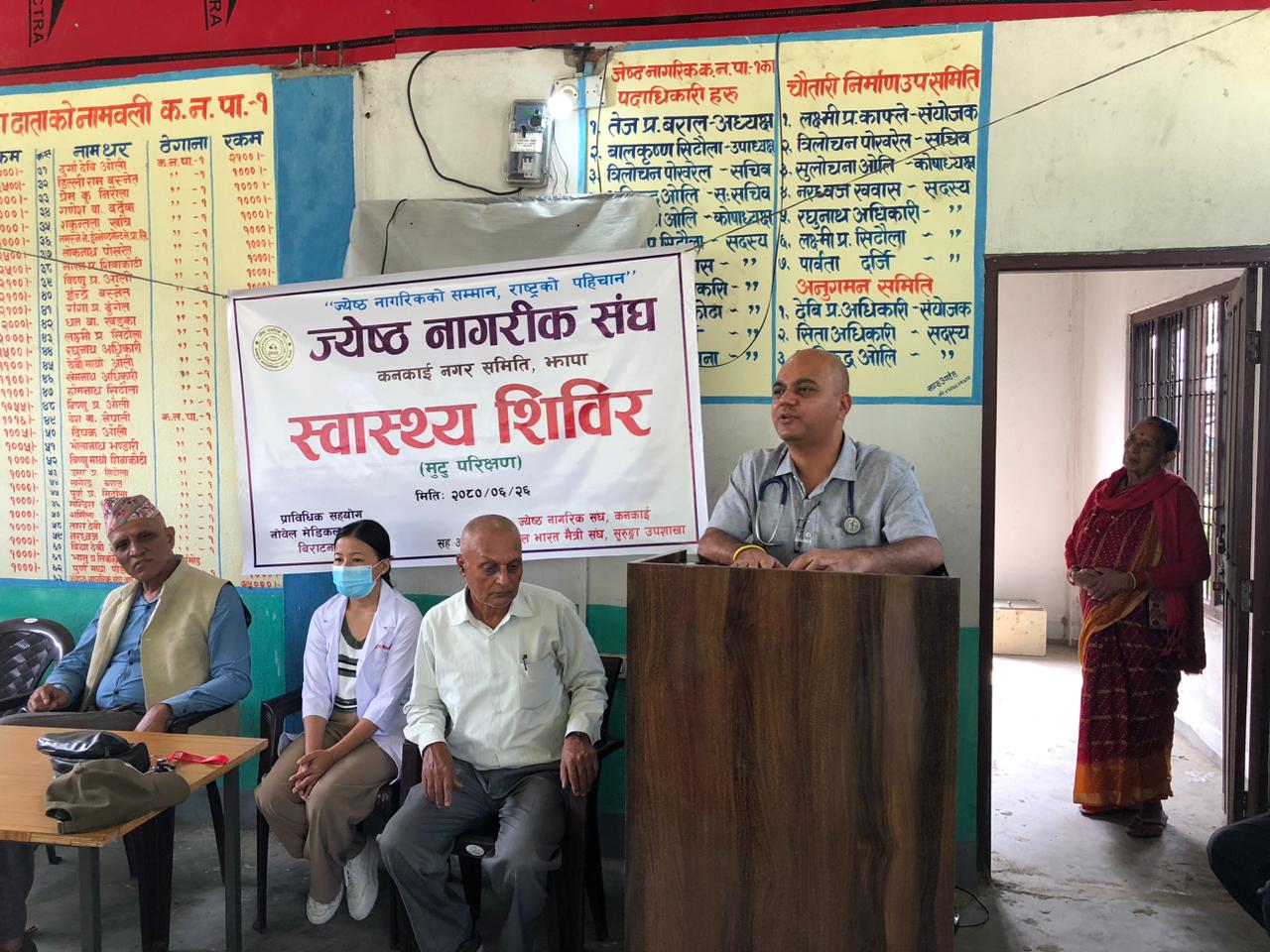 असोज २६ गते जेष्ठ नागरिक संघ कन्काई, झापाको आयोजना र नेपाल भारत मैत्री संघ, सुरुङ्गा उपशाखाको सह—आयोजना साथै नोवेल मेडिकल कलेज टिचिङ्ग हस्पिटलको प्राविधिक सहयोग शिविर सम्पन्न भएको हो ।