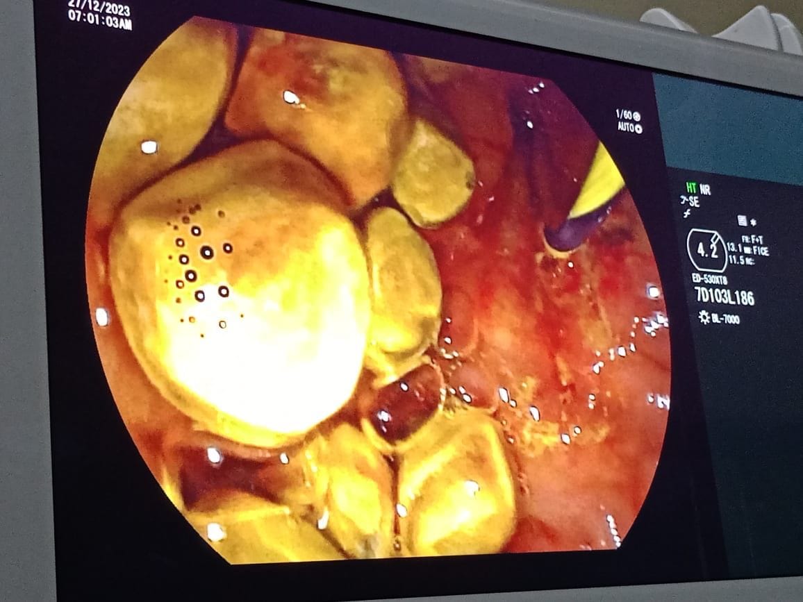 खोटेहाङ्ग गाउँ पालिका वर्ष ७२ पदमकुमारी राईको पित्त नलीमा रहेको ५० वटा जती ढुंगा विना शल्यक्रिया मुखबाट इण्डोस्कोप छिराएर झिकेर सफल उपचार भएको हो ।ग्यास्ट्रोइन्टेरोलोजिष्ट डा. मोहन खड्का नेतृत्वको चिकित्सा टोलीले उनको इआरसीपी प्रविधिबाट उक्त ढुंगा निकालेको थियो ।