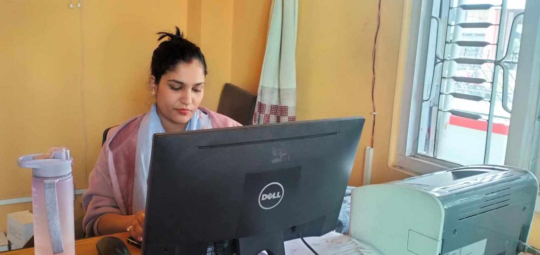 कार्यालयकी कर्मचारी कार्यालय सहायक मोनिका घिमिरे ।