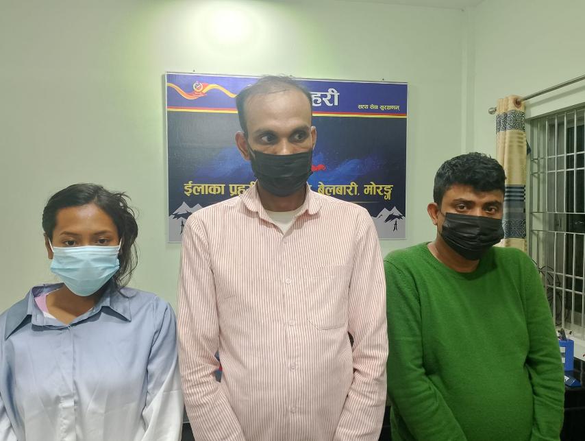 प्रहरीले बंगलादेश पल्लाबी ढाका बस्ने बर्ष ४९ को बंगलादेशी नागरिक महमद महबुर हुसेन, बंगलादेश सितागन्ज बस्ने बर्ष ३७ को बंगलादेशी नागरिक महमद तानबिर हुसेन र काठमाण्डौ नयाँबजार बस्ने २३ बर्षिया सुनिता खत्रीलाई पक्राउ गरेको हो ।