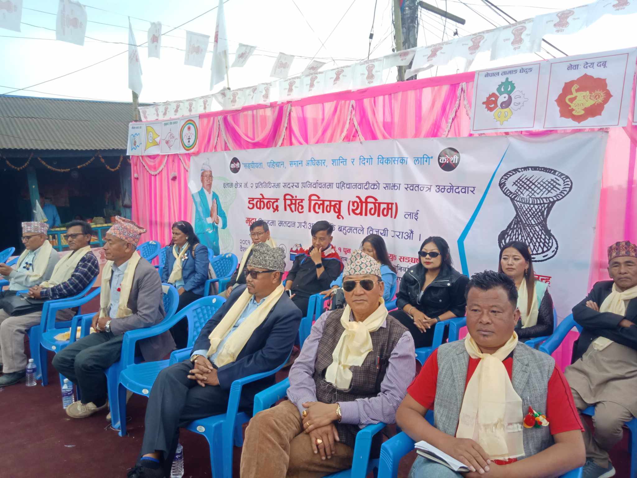 इलाम । चुनाव चिन्ह मुढा लिएका साझा स्वतन्त्र उमेद्वार डकेन्द्रसिंह थेगिम लिम्बू समर्थकहरुले आज (सुक्रबार) इलामको मंगलबारे बजारमा भब्य चुनावी सभा गरेका छन् । सभालाई सम्बोधन गर्दै किरात राई यायोक्खा उपाध्यक्ष राकेश राईले डकेन्द्रसिंह थेगिमले चुनाव हारेमा पितृदेवले सराप्ने भन्दै मुढा चिन्हमा भोट लगाउन आव्हान गरेका छन् । राई समुदायले आफ्नो पूर्खालाई पितृदेवा वा भगवान मान्दछ । पितृ रिसाएमा घर परिवार र गाउँमा अशुभहुने विस्वास राख्दछन् । राई समुदायको साझा संस्था किरात राई यायोक्खाले स्वातन्त्र उमेद्वार डकेन्दसिंह थेगिम लिम्बूलाई भोट लगाउने निर्णय गरेको भन्दै राई लगायत इलाम—२ का आम जनतालाई हातले बनेको मुढामा भोट लगाउन अनुरोध गरेका छन् । सभामा अभियान्ता तथा नेपाल आदिबासी जनजाति महासंघका पूर्ब महासचिव आङ्काजी शेर्पाले डकेन्द्रसिंह थेगिम स्थानीय ओर्गानिक उमेद्वार भएकाले सबै लागेर जिताउन आव्हान गरेका छन् । थेगिम इलामे जनताको सुख, दुःखमा रहने उमेद्वार भएको शेर्पाले बताए । थेगिम शीरमा कफन बाँधेर पहिचानको आन्दोलनमा लागेको जनताको असली सेवक भएको शेर्पाको भनाइ थियो । शेर्पाले अष्ट्रेलियामा विदेशीको भाडाँ माझ्दै गरेका सुहाङलाई टिकट दिएर पार्टीमा योगदान गरेका सुरेन्द्र केसी, बुद्धि खनाललाई एमालेले अन्याय गरेको भन्दै राजाको छोरा राजा मानेर बस्नुभन्दा इमान्दार कार्याकर्ताहरुले डकेन्द्र थेगिमलाई भोट लगाउने बताए । शेर्पाले नेपाल आदिबासी जनजाति पत्रकार महासंघ (फोनिज)को महासचिव भएर संघीयता विरोधीको घण्टी लगाएर आएका मिलन लिम्बूलाई फोनिजले तुरुन्त बर्खास्त गर्नुपर्ने बताएका छन् । यायोक्खा महासचिव भीम राई र यसेरी लिम्बूले सञ्चालन गरेको चुनावी सभामा स्वतन्त्र उमेद्वार डकेन्द्रसिंह थेगिम लिम्बू, चुम्लुङ संघीय अध्यक्ष प्रेम एक्तेन, पूर्व संस्कृति मन्त्री गोपाल किराती, केशव सुर्यबंशी, आर्यन मंगोल, पदम अधिकारी लगायतले विचार राख्दै मुढामा भोट मागेका छन् । कार्यक्रममा गायक कलाकारहरु एकदेब लिम्बू, सुनिता थेगिम, गंगा फ्याक, तिर्सना नेम्वाङ, राजेन्द्र केरुङ लगायतले गीत प्रस्तुती दिएर समर्थक÷शुभचिन्तकलाई मनोरञ्जन दिएका थिए । इलाम, नवमी बजार, मंगलबारे लगायतको चुनावी शभामा सर्वसाधरणको भब्य उपस्थितिहुने गरेकोले जित सुनिश्चित भएको किरात याक्थुङ चुम्लुङको महासचिव निरन्ति तुम्बापोले बताए ।
