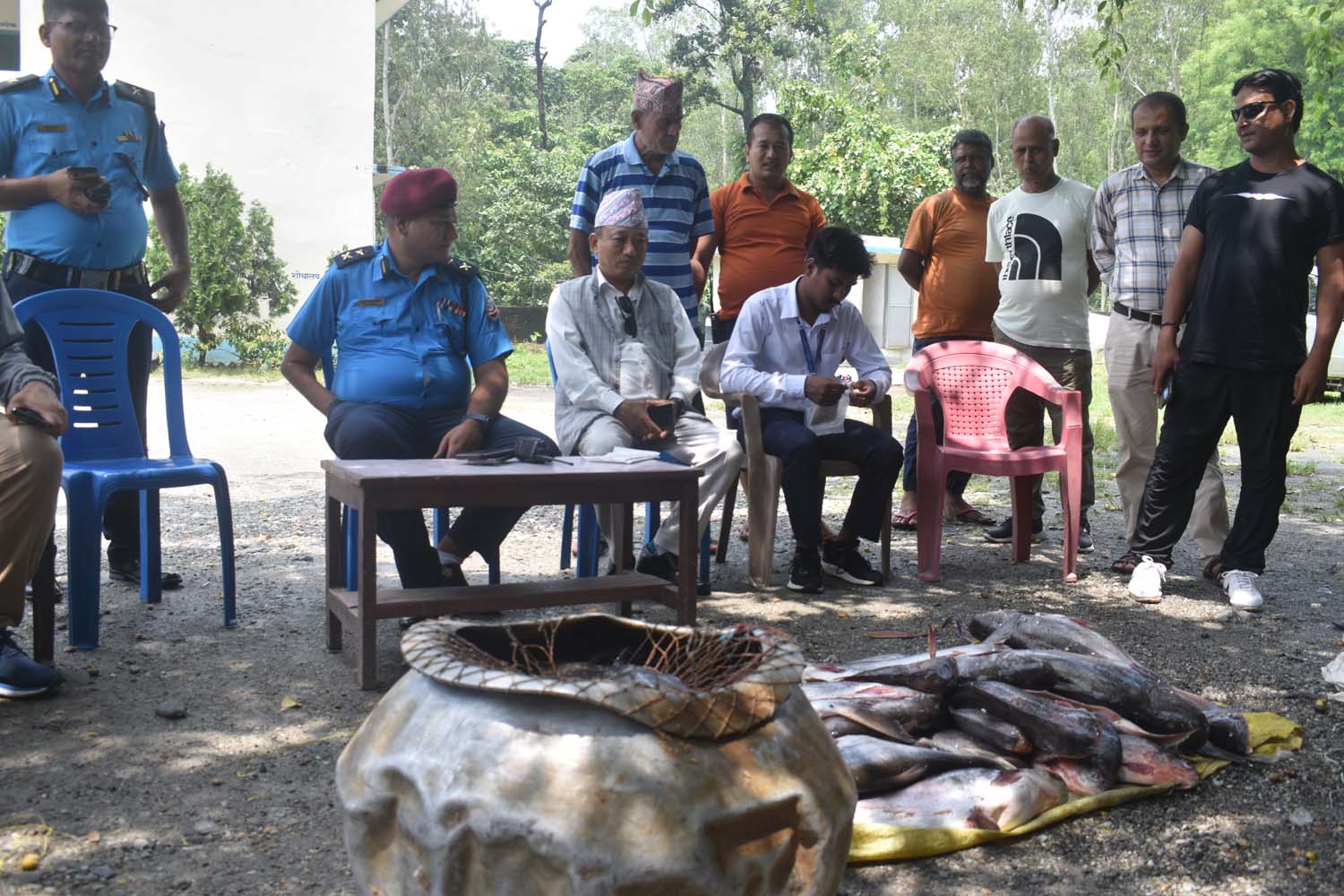 मृतकको लाश नकुहिने केमिकल “फर्मालिन” प्रयोग गरेर लुकाई छिपाई भारतबाट ल्याएको १ सय १३ केजी माछा प्रहरीले नियन्त्रणमा लिएर डिस्पोज गरेको हो ।