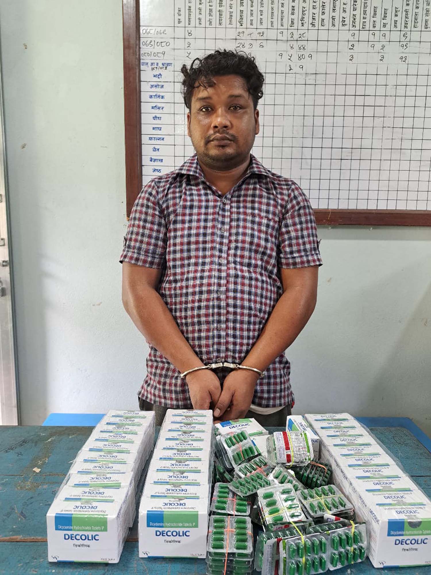 हिजो श्रावण ३० गते बिहान करिब ९ः३० बजेको समयमा पथरी शनिश्चरे नगरपालिका वडा न. ४ बस्ने वर्ष ३२ को सिमन परियारलाई ट्रमाडोल ११० पत्ता (११०० चक्कि) र डिकोलिक ३३ बट्टामा २० पिसको दरले ६६०० चक्कि गरी जम्मा ७ हजार ७ सय चक्कि सहित पक्राउ गरेको हो ।