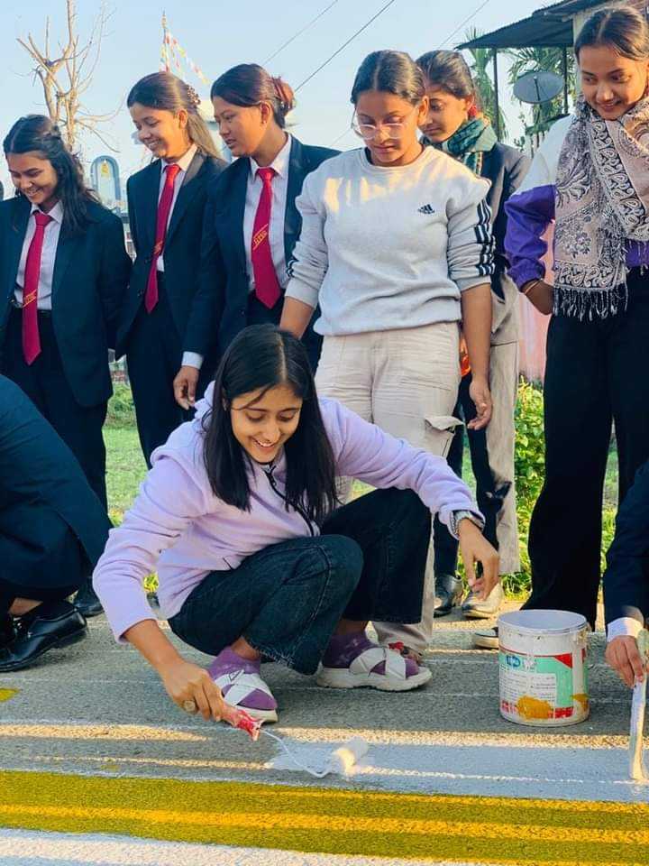 सडकमा जेब्राक्रस बनाउदै ऋतम्भरा बहुमुखी क्याम्पसका विद्यार्थीहरु । फायल तस्वीर