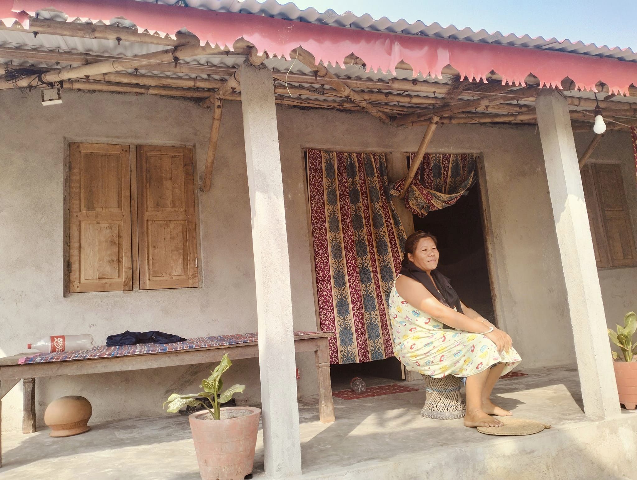 निर्माण सम्पन्न भएको घरमा बस्दै निर्माण उपभोत्ता समितिका अध्यक्ष कौशिला राई ।