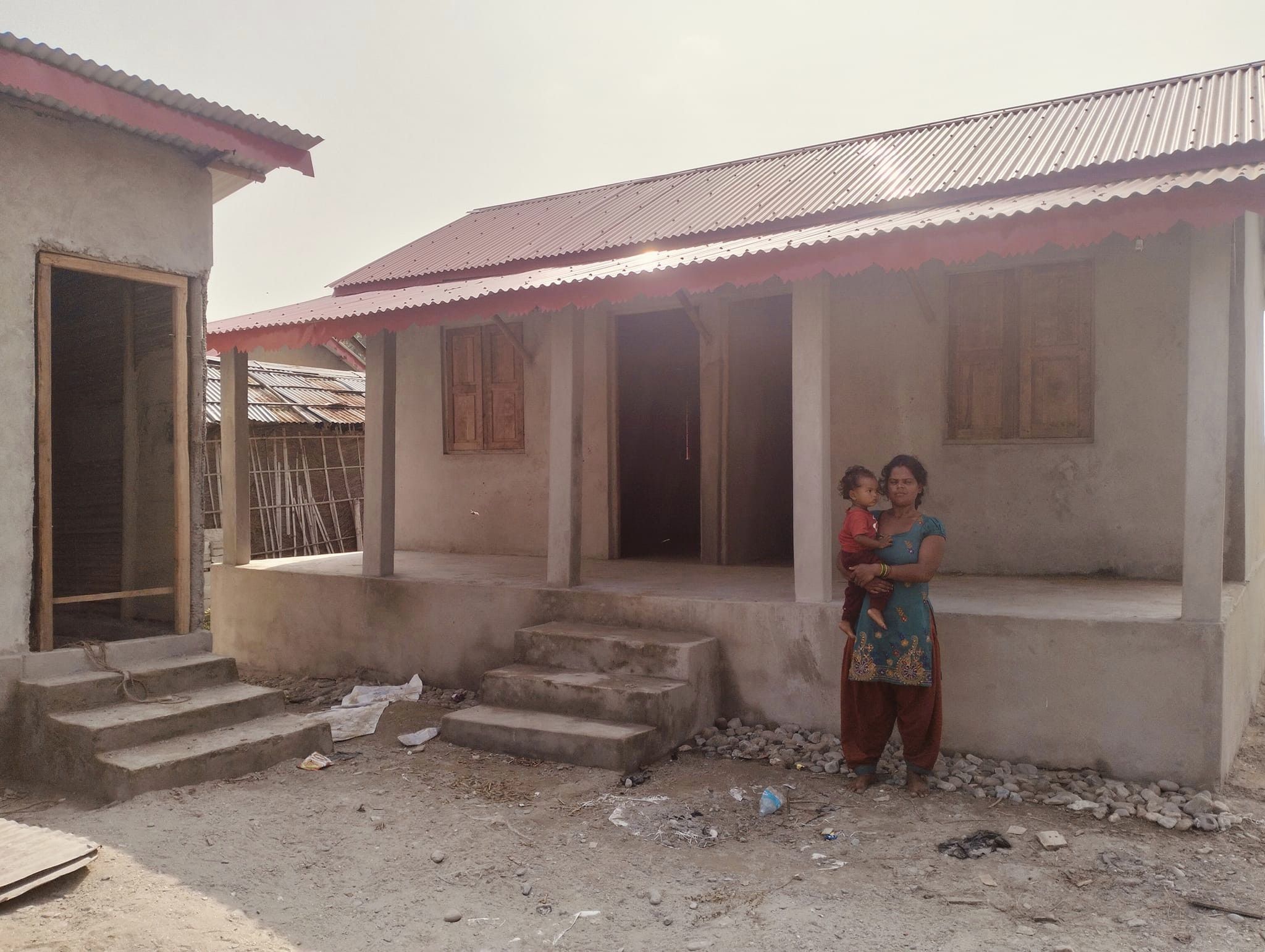 निर्माण सम्पन्न भएको घर अगाडी मञ्जु ऋषिदेव ।