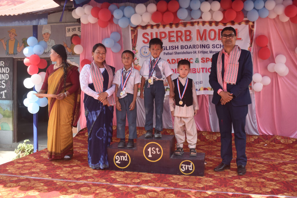 कक्षा नर्सरीका प्रथम द्धितिय र तृतीय क्रमशः काव्य गुप्ता, सस्तीका बिस्ट, सक्षम भट्टराई, कक्षा एलकेजीका मिकफुङ लिम्बु, सभ्यता अधिकारी, र सियाङमा राई कक्षा युकेजीका मनयाता घिमिरे, स्पीका लिम्बु, माविहाङ लिम्बु, कक्षा १ का रिदम मल्ल, राज मण्डल, र दिप्सन राई कक्षा २ का कुसुम मण्डल, कुन्साङ लिम्बु, लायुन पौडेल कक्षा ३ का दीपा खत्री, क्रीसु प्रसाईँ र अंकिता भट्टराईलाई पुरस्कृत गरिएको थियो ।
